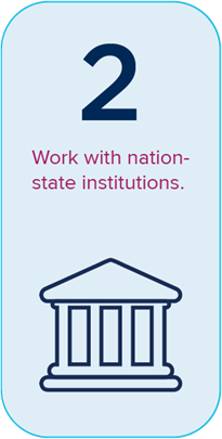 Work with nation-state institutions. Even as cities gain more political power, nation-states will still hold constitutional and political powers unavailable to cities. City leaders need to make their interests and ambitions clear to their national governments, particularly when their priorities do not align with national agendas. National governments are also encouraged to develop strategies to better respond to the needs of their cities and understand that to do their job well, they must work at the urban level as well as at the national level.