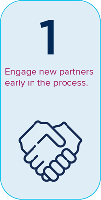 Engage new partners early in the process. Adapting to an era of second-generation PPP frameworks requires that cities turn to and engage new or unconventional partners earlier in the process of analyzing the critical urban challenges they hope to address. Cross-sector partnerships have the most to offer when diverse actors can be engaged early enough to help cities think creatively about developing new solutions rather than simply implementing predefined solutions.t of residents.
