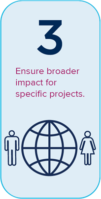 Ensure broader impact for specific projects. To conceptualize more legitimate and sustainable PPP arrangements, cities and their partners should seek a broad-based solution or community outcome. This is in contrast to a starting point that emphasizes the implementation of a discrete and isolated project. Such opportunities include deploying renewable-energy solutions as the cost of those technologies fall, harnessing new transportation and mobility dynamics as vehicle fleets are increasingly electric and automated, and better use of resources to fundamentally alter the nature of urban consumption and waste. Reorienting PPPs to consider broader goals and transformative outcomes opens the door to unleashing greater transformative action.