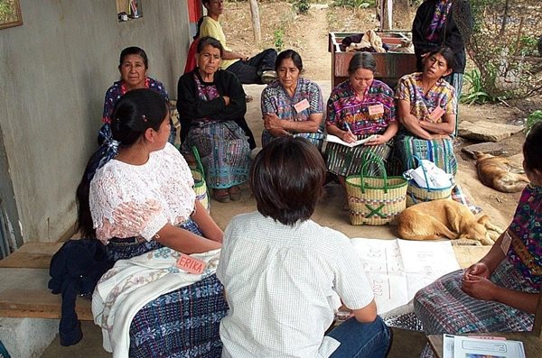 A group of women in Guatemala discuss women’s health issues using activities from Health Actions for Women.
